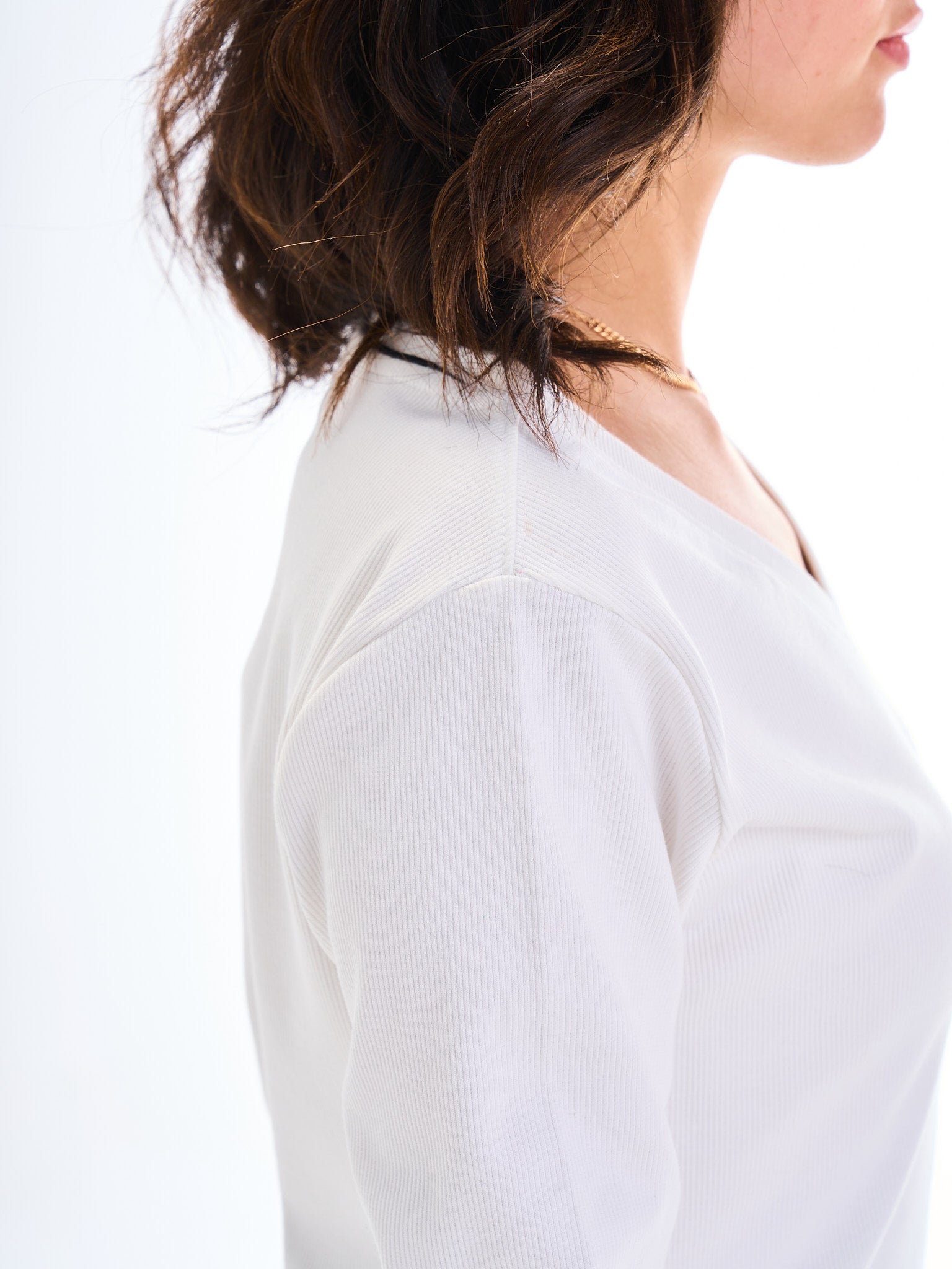 This cotton long-sleeve top has a small front slit at hip length for comfort and shape. It’s soft, breathable, and easy to match with jeans, skirts, or trousers.